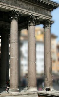 Le granit hier : Panthéon à Rome (-27 av. J.C.) : Colonnes monolithes en granit gris provenant de carrières d'Egypte.