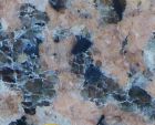 Grains typiques d'un granit : micas (noir), quartz (blanc) et feldspath (rose).